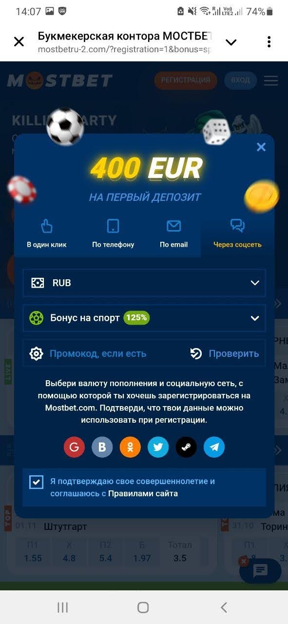 Регистрация в Mostbet